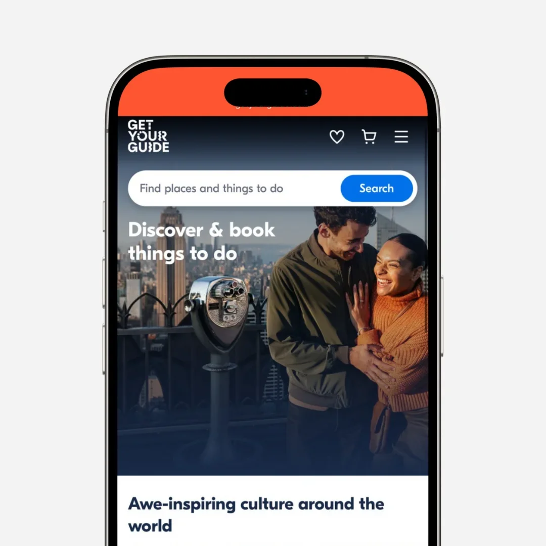 GetYourGuide is the travel platform that lets you easily book tours, attractions, and experiences around the world — right from your mobile browser. Enjoy instant booking, skip-the-line options, expert-led tours, and top-rated activities in one seamless mobile experience. Discover more and travel smarter with GetYourGuide! Start exploring now >