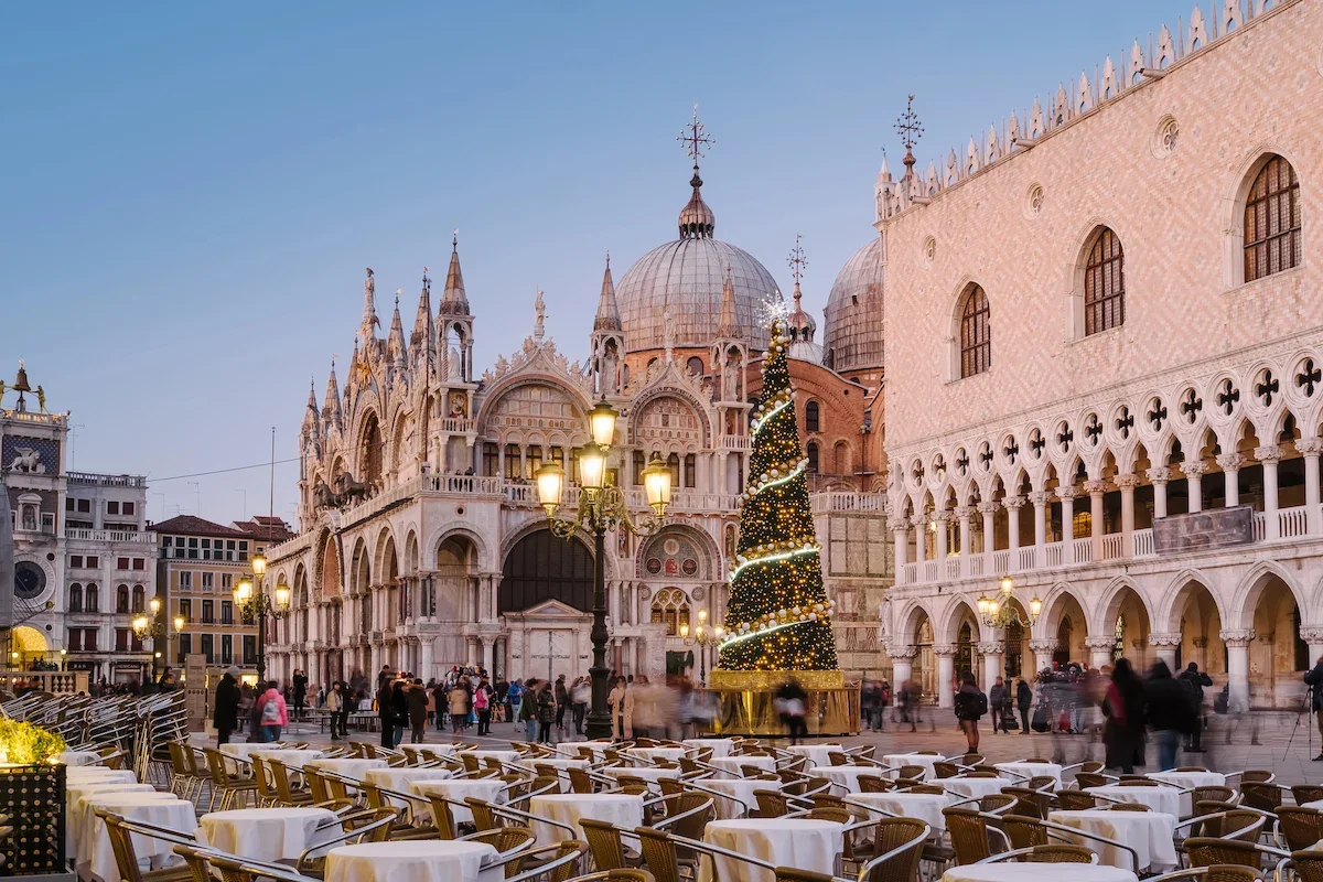 You’ll find San Marco at its most enchanting in December, when a towering Christmas tree glows beside the Basilica’s ornate façade, and quiet carols drifting from churches at dusk.